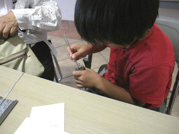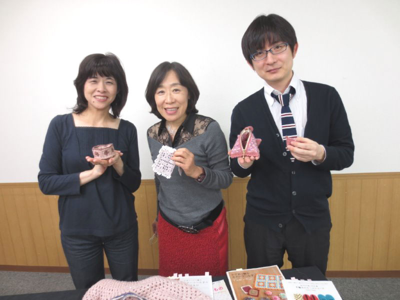 ■模様編み集 第2弾 模様編み集の第2弾がでました。 今回もデザインを載せていただきました。 今回も周藤先生のご指導でお花模様のキットから習ってまいりました。 とても楽しかったです。 ■JAFリリアン講習会 28日にJAFさんマリンピア神戸にてイベントがありました。 光る糸を使ってのリリアン講習会でした。 暑い中ご参加いただき、有難うございました。 リリアン男子? とても上手にもくもくと編んでくださいました。 女の子たちもとにかく楽しい!との声をいただきました。楽しい1日でした。 ■ミニバッグ 小さなバッグ。スターステッチで編んでみました。 バッグチャームにもなります。