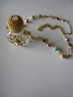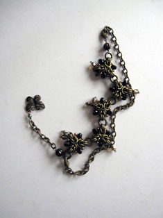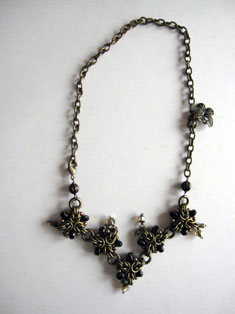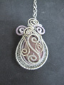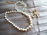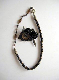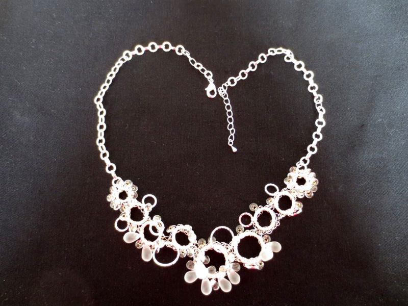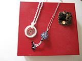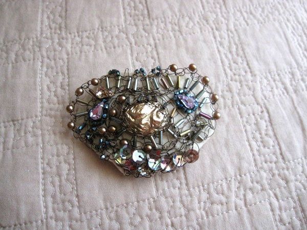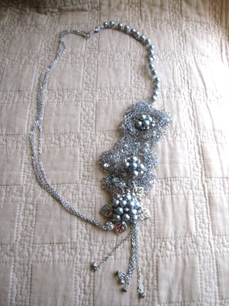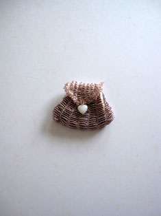 1月は編み物に時間を多く取っておりました。 9年目に初めて服をプレゼント。本人は気に入ってくれたかしら? 広瀬光治先生デザインの御本の中から色変えをしたり、針の入れ位置を少し変えたり、ボタンをパリで買ってきたアンティークにしたりと私の年齢にあった?ように編んでみました。 棒針を久しぶりに持ちました。それも細い。 昔、英字のレシピで編んだ事があったのを思い出し久しぶりに編んで見ました。 ネックレスにするか、ブローチにするか、まだ思案中です。