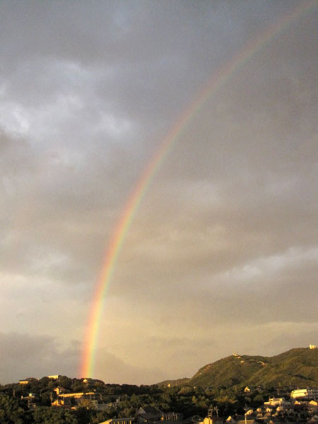 ■ビーズデコ刺繍講座 9月30日の台風は皆様の地域はいかがでしたでしょうか。 神戸はかなり風雨が強く、レッスンはお休みに。 そのあと東京へ行くための飛行機は欠航となり、次の日朝一番で飛んでいきました。 ビーズデコ刺繍の講座でした。 講師の米永先生とお写真を撮らせていただきました。 12月15日から開講予定です。お楽しみにしていてください。 神戸の台風も夕方には落ち着き、一瞬でしたが海から山にかけて大きな虹がかかりました。