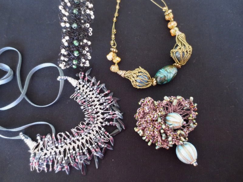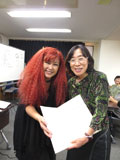 ■ブラッシュアップ講座 (ワイヤーレースジュエリー) ワイヤーレースジュエリーのブラッシュアップ講座に行ってきました。 岸先生から直接にご指導していただきました。 デコ刺繍のように見えますが、ワイヤーで編んだヘアーアクセサリーや立体的なお花のモチーフのネックレス、とても素敵なデザインです。 最後に岸先生とお写真撮らせていただきました。 楽しいレッスン有難うございました。