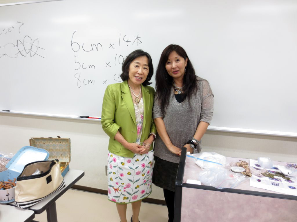 ■ビジューデコスイーツ レッスンは8月から元町教室でスタートです。 生徒の皆様から是非やってほしいとのお声を頂き、東京日帰り講習会へ行って参りました。 とーっても可愛い “デコスイーツ” でも大人かわいいので、私たちも身に着けても素敵です。 食べるだけだったスイーツを観察することも多くなりました。 ■リリアン研修会 リリアン研修会に行って参りました。 リリアンで ”ハート?” 出来るんです。かわいいネックレスの出来上がりです。 久しぶりに関先生とお写真ご一緒させていただきました。 胸元の下の方のコサージュも本日のレッスンでした。 楽しいレッスン有難うございました。 ■(株)コロネット新経営体制発表会、楽習フォーラム認定講師優秀指導者表彰式 (6/30) 東京で行われました。 今年も頂く事になりました。レッスンの日でしたが、生徒の皆様が行ってきてくださいとの優しいお言葉を下さり、伺わせていただきました。 いつもレッスンにご参加頂いております皆様のおかげと感謝致しております。 これからもより楽しく、新しいテクニックをお伝えしていきたいと思っております。 ☆江幡社長より表彰状と副賞(ユミ カツラのパールネックレス&イヤリング)を一人一人お手渡し頂きました。 ☆パーティーでは桂由美先生のお言葉を皆様に頂きました。いつも素敵な先生です。