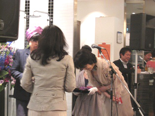 ■日本生涯学習協議会 記念パーティー 公益法人日本生涯学習協議会の記念パーティーがありました。日頃お目にかかれない多くの方々にお会いでき、とても緊張いたしました。 その会場で今年の優秀指導者賞の表彰式がございました。今年は第8位を頂きました。本当に多くの方々に支えられ今年も頂くことができました事、心より感謝致しております。 表彰式の様子 私は後姿になりましたが、水野先生からは表彰状をいただき、桂由美先生からはパーティーバックを直々にいただきました。感動でございました。 最後に広瀬光治先生のお言葉がございました。今日も素敵なおめしものです。 コロネットのエグゼクティブ会員になりました。伊藤社長・水野先生から手渡していただきました。 沢山のデザイナーの先生方ともお目にかかりました。周藤先生と写させていただきました。 ■日本ホビーショー 28日は日本ホビーショーでリリアン編みコンテストの表彰式がありました。審査員奨励賞をいただきました。毎年ホビーショーは伺っておりますが、今年は参加させていただいたって感じでした。 作品が展示してあるスペースで水野先生とお写真を撮らせていただきました。 表彰状とベネッセコーポレーションさまから頂いた副賞と広瀬光治先生サイン入りのフレンチリリアン、アトリエに飾らせていただきます。 ホビーショーに飾られていたデコの車、あまりにキラキラ綺麗だったので。