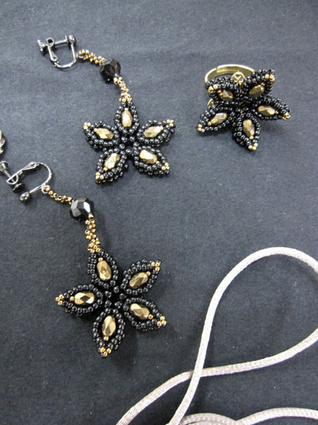 ■「ビーズ&ワイヤーで作るモードジュエリーコレクション」 作品掲載 余合ナオミ先生監修 「ビーズ&ワイヤーで作るモードジュエリーコレクション (ブティック社)」 に作品を掲載していただきました。 ■クロッシェカフェ卒業式 クロッシェカフェ (よみうり文化センター神戸) の卒業式でした。 全12回、宿題もありましたが、最後まで皆様頑張ってくださいました。 とても綺麗に、早く編めるようになりました。 最後にお風邪で欠席された方もあり残念でした。 来年も皆様とクロッシェが出来る事を楽しみにしております。 ■オートクチュールフルールのコンテスト入選 オートクチュールフルールのクリスマス作品コンテストで入選いたしました。 ■加山忠則先生スペシャルセミナー 加山忠則先生のスペシャルセミナーに参加いたしました。 とてもおしゃれな先生からコーディネートのお話やメガネ留めのテクニック等等、沢山お聞かせ頂きました。 私の作品作りにとてもヒントになる事を沢山頂いて帰ってまいりました。 とても楽しい一日でした。 今年も残すところ僅かとなりました。 今年も多くの方々に支えられ一年をすごす事が出来ました事、とても感謝しうれしく思っております。 来年もビーズ・クロッシェ(編み物)・花びらメイキングの様々な事を吸収し、より良いレッスン、作品作りをしてまいりたいと思っております。 来年もよろしくお願い致します。